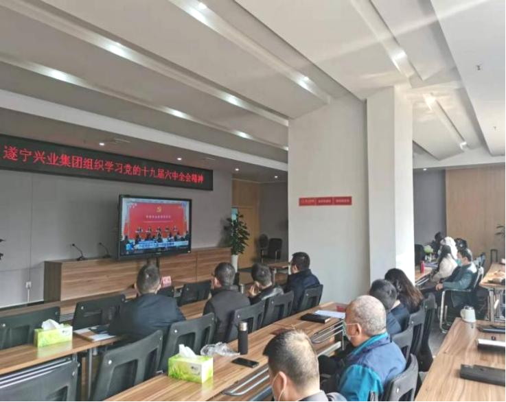 ? ? 11月12日10時(shí),中共中央舉行新聞發(fā)布會(huì),介紹黨的十九屆六中全會(huì)精神。遂寧興業(yè)集團(tuán)組織廣大黨員和干部職工通過中央廣播電視總臺(tái)及人民網(wǎng)、新華網(wǎng)、中國(guó)網(wǎng)、學(xué)習(xí)強(qiáng)國(guó)等載體,全程收聽收看。?
